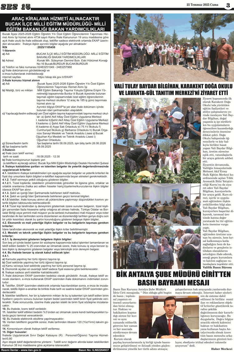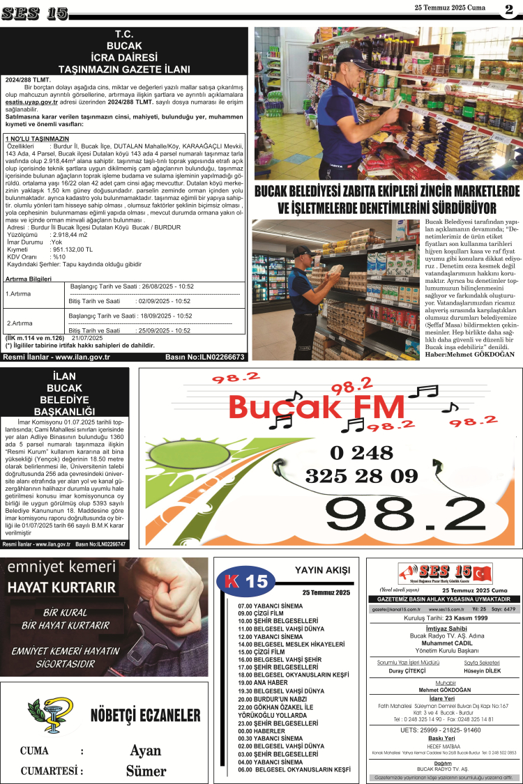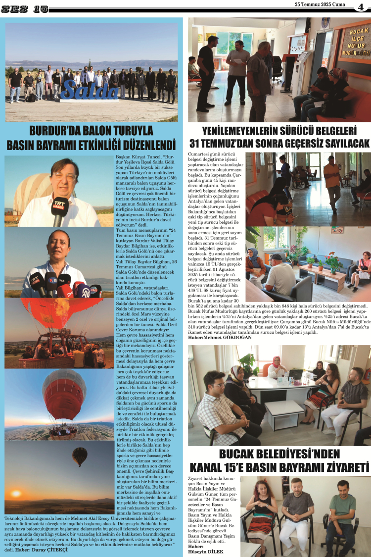 Ses 15 Gazetesi 25 Temmuz 2025 Yayını