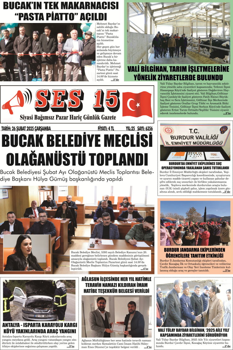 Ses 15 Gazetesi 26 Şubat 2025 Yayını