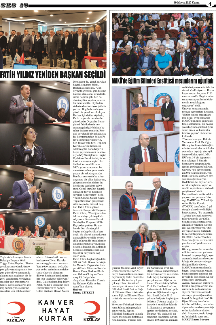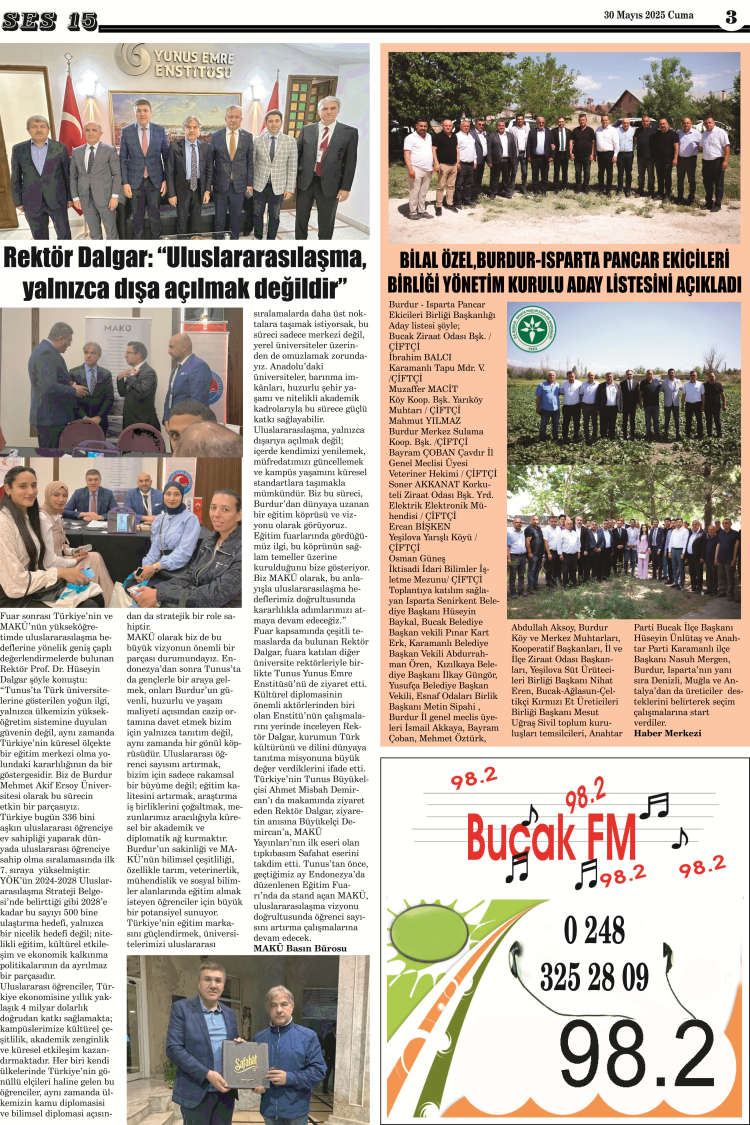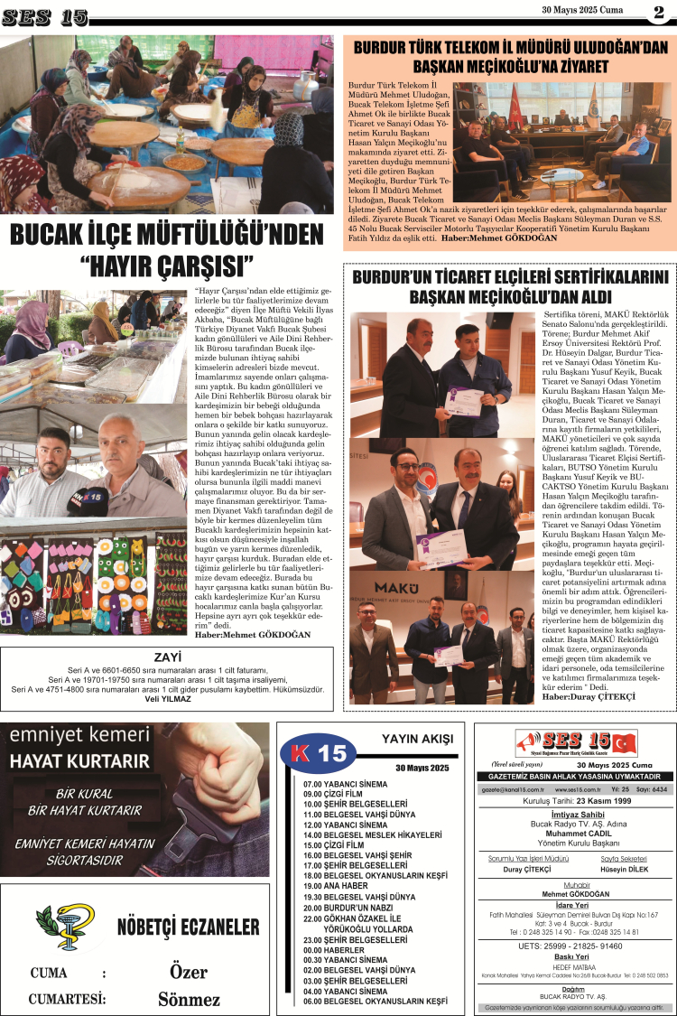 Ses 15 Gazetesi 30 Mayıs 2025 Yayını