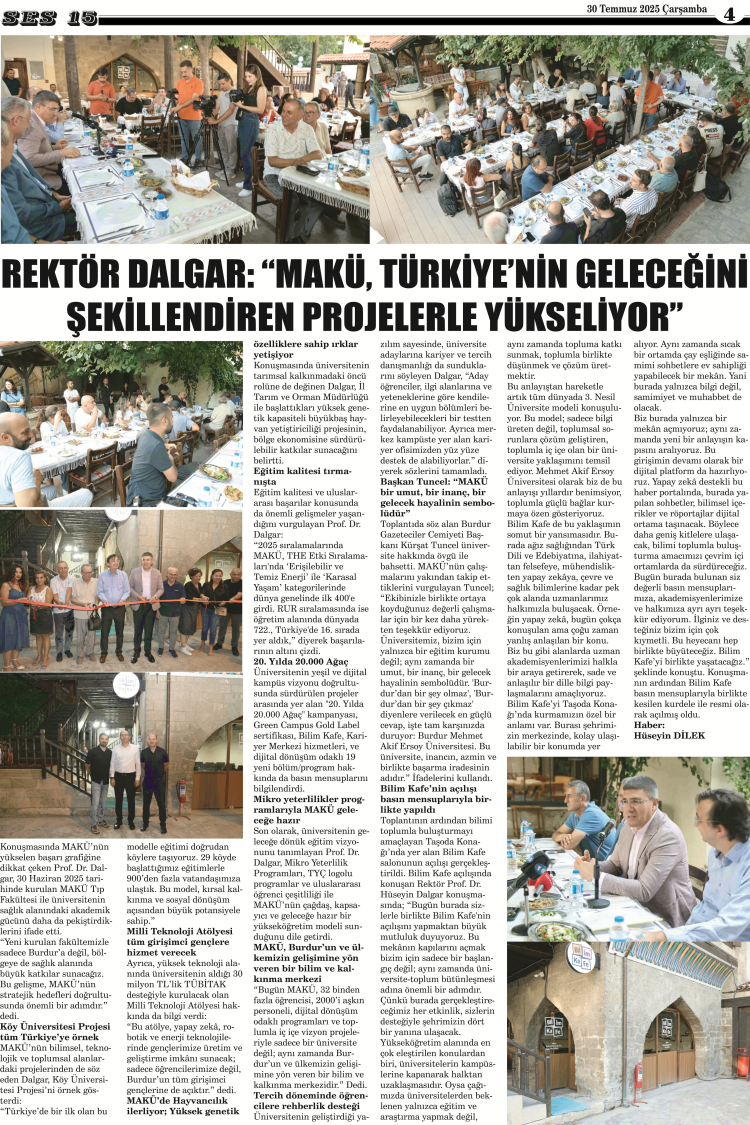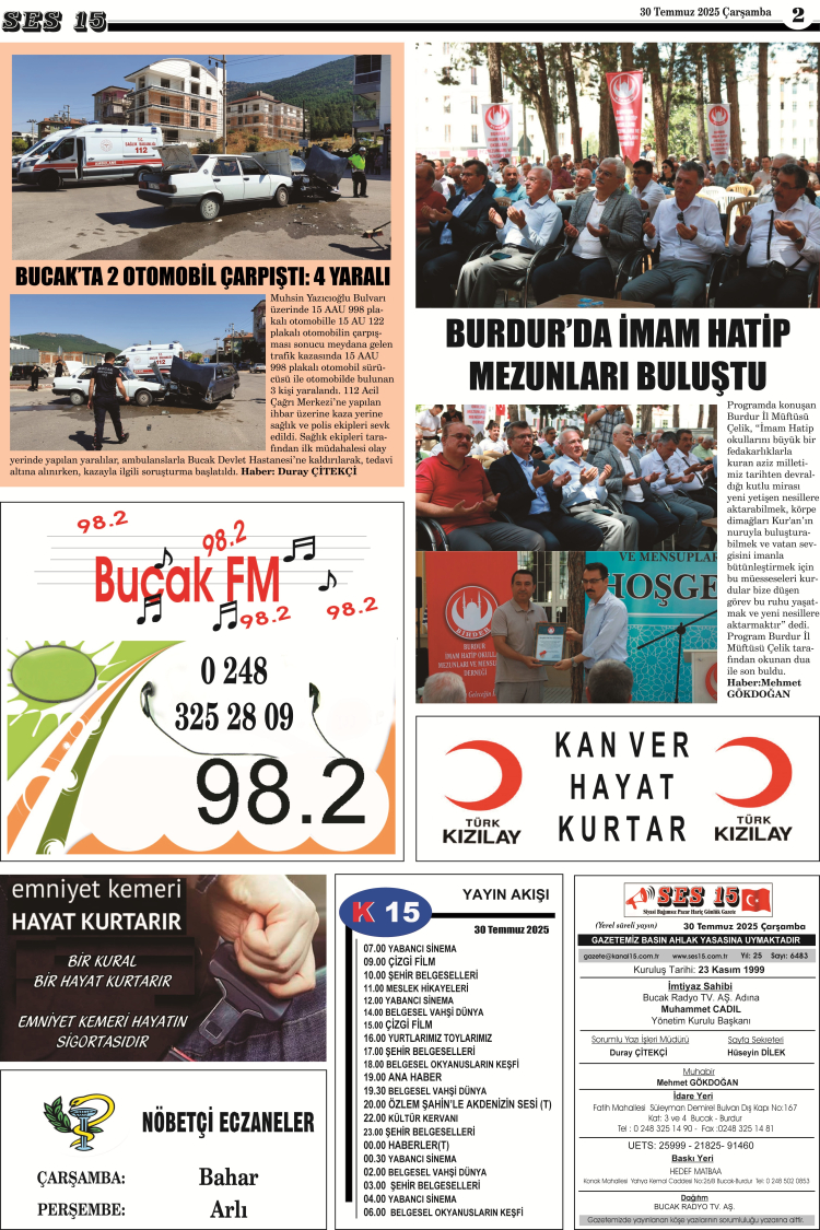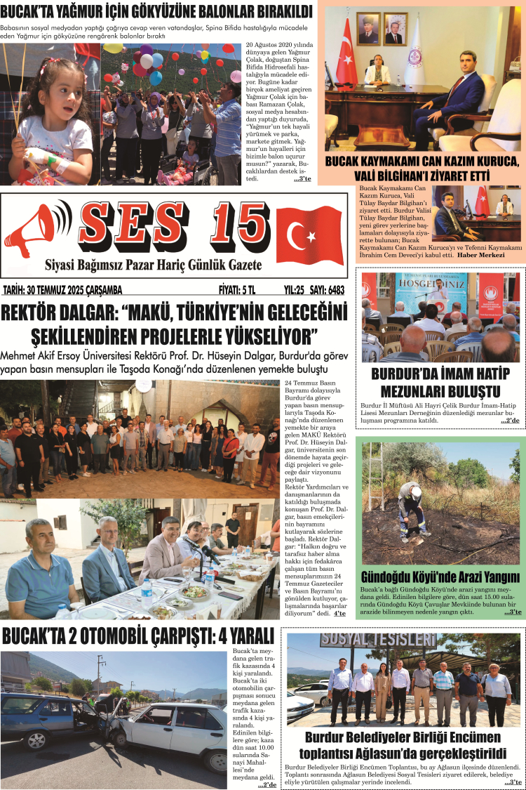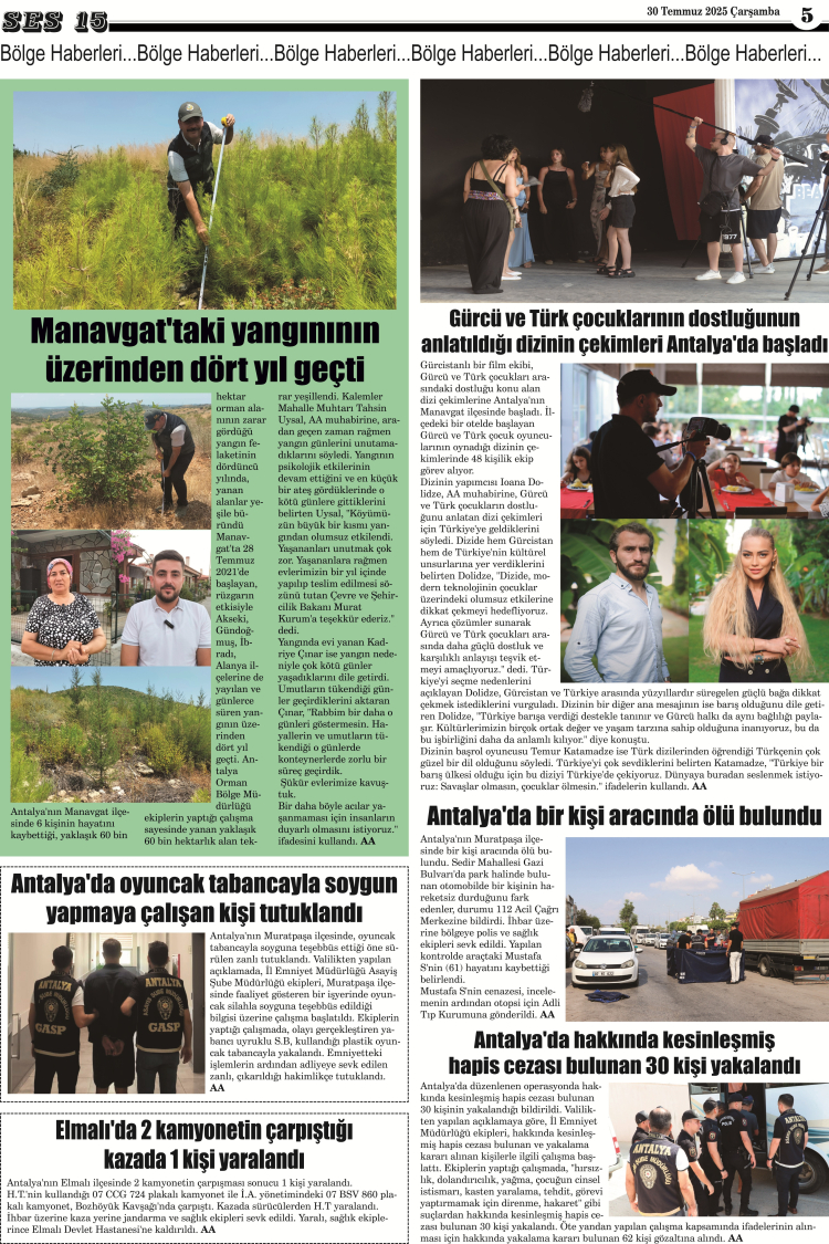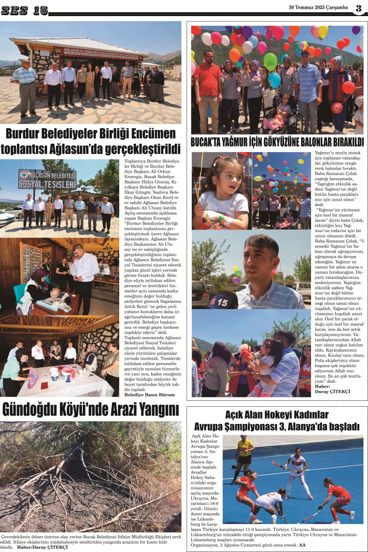 Ses 15 Gazetesi 30 Temmuz 2025 Yayını