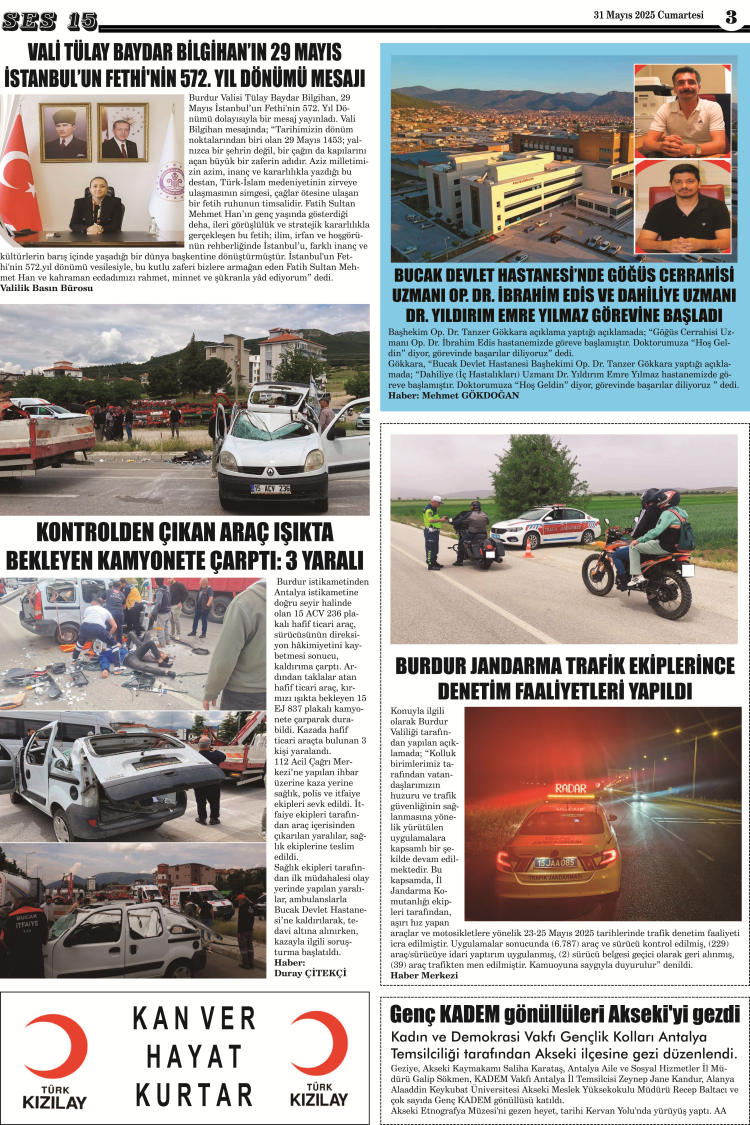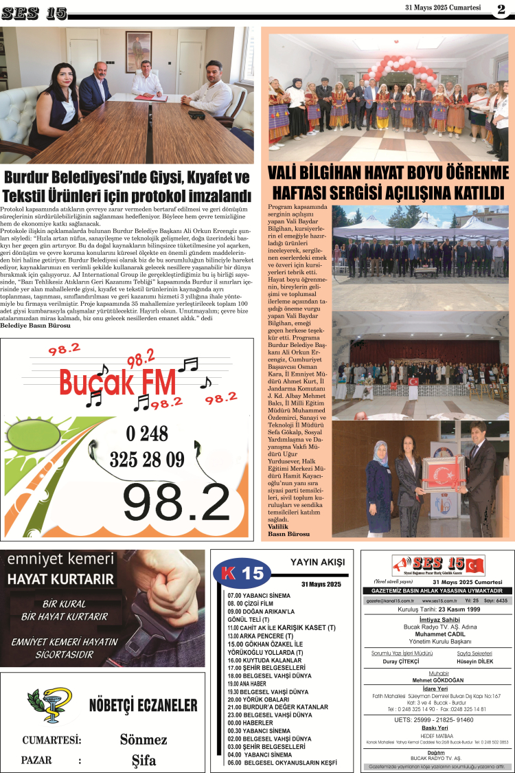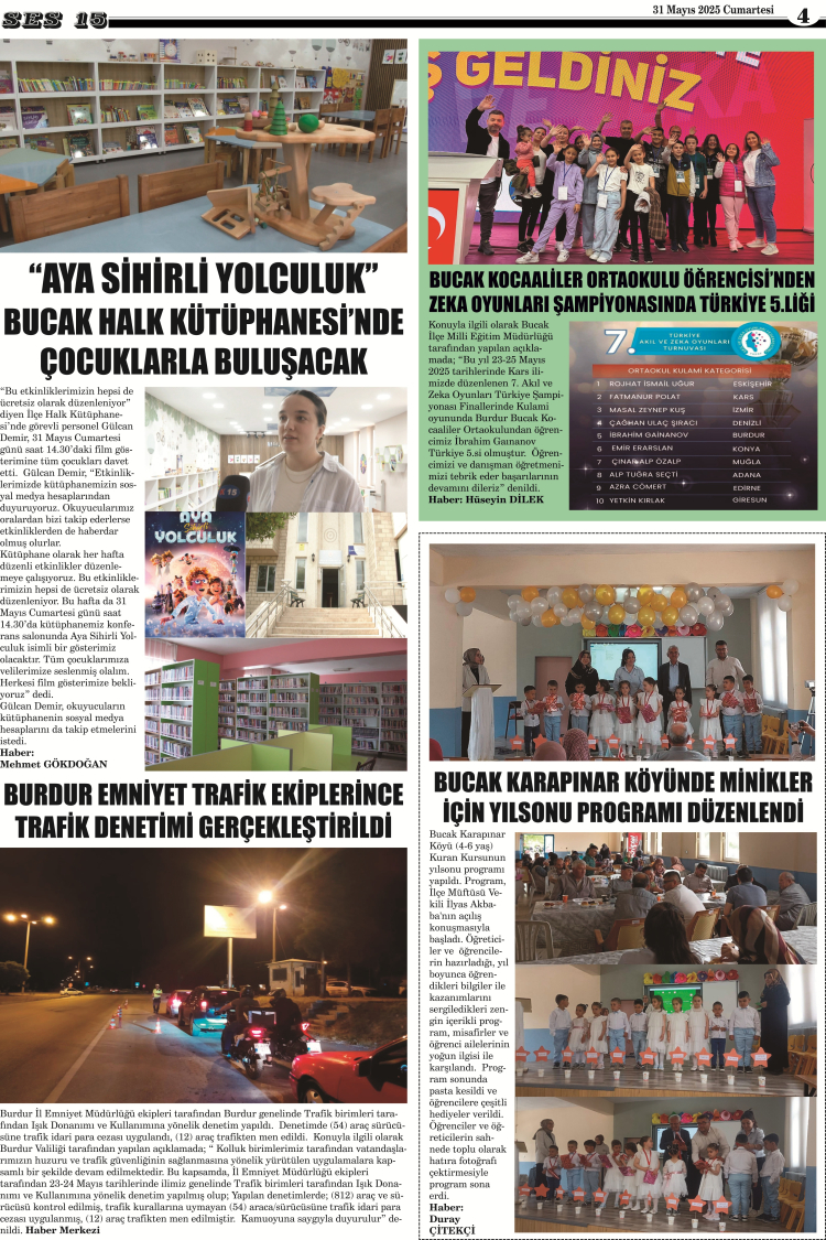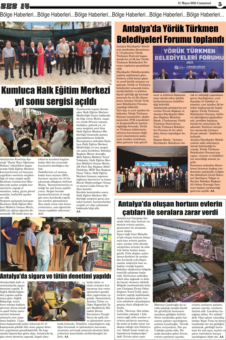 Ses 15 Gazetesi 31 Mayıs 2025 Yayını