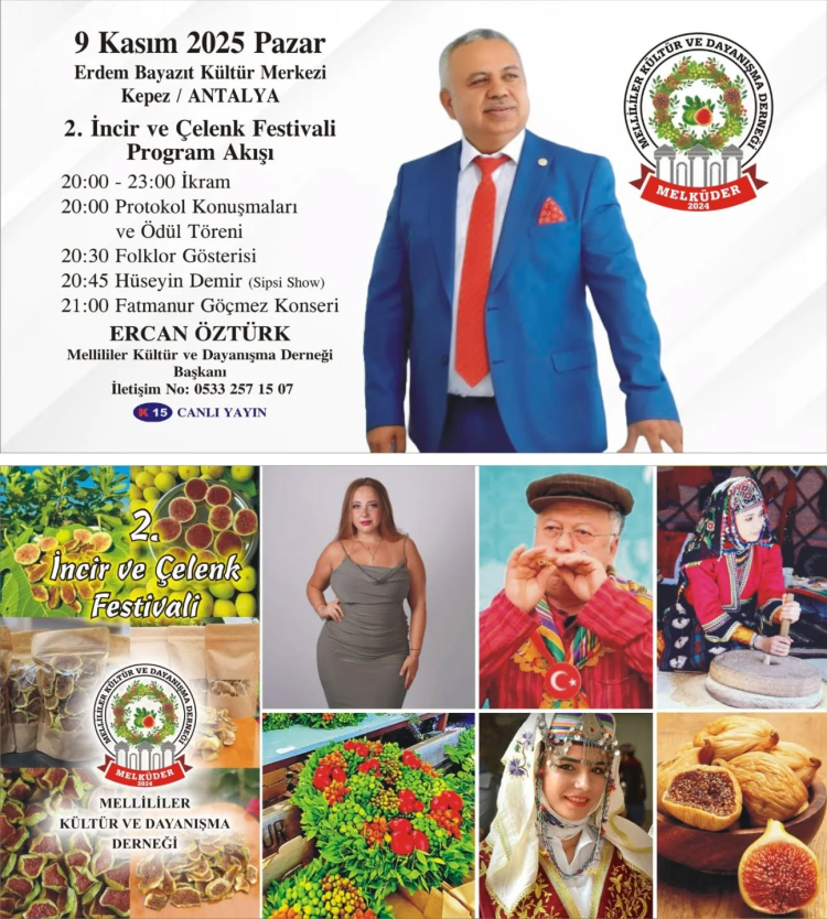 Antalya Mellililer Kültür ve Dayanışma Derneği tarafından 2.’si yapılacak olan “İncir ve Çelenk Festivali” 9 Kasım Pazar günü gerçekleştirilecek.