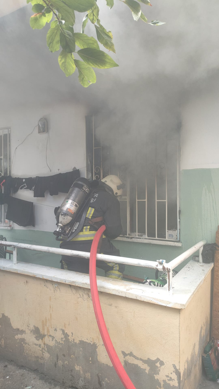 İtfaiye ekiplerinin müdahalesiyle söndürülen yangın nedeniyle evde hasar oluştu.