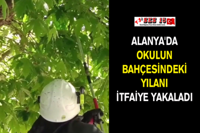 Antalya'nın Alanya ilçesinde okulun bahçesinde bulunan ağaçtaki yılan, itfaiye ekibince yakalanıp doğaya bırakıldı.