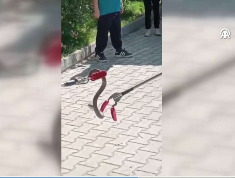 Okula gelen itfaiye ekibi, ağaçtaki yılanı yakalayıp kırsal alanda doğaya saldı.