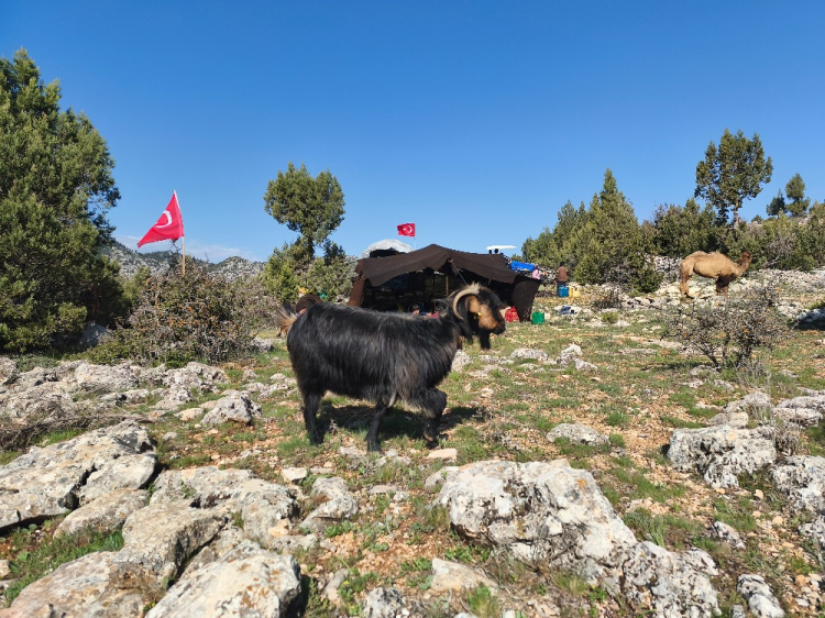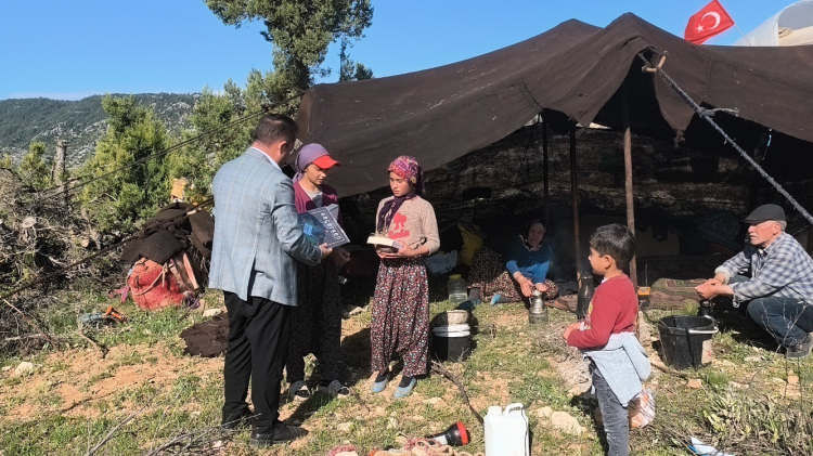 Anamur Müftülüğü personeli, havaların ısınmasıyla Konya-Karaman sınırındaki yaylalara göç etmeye başlayan Sarıkeçili Yörükleri'ni ziyaret etti.