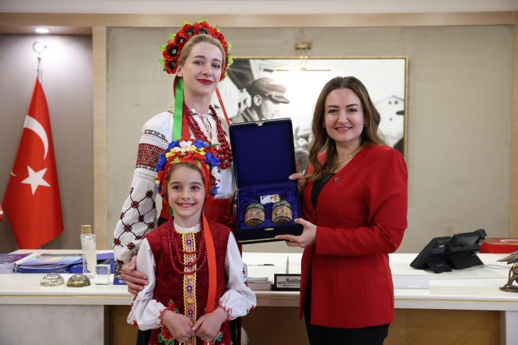 Yöresel kıyafetleriyle ziyarete katılan çocuklar, ülkelerine özgü hediyeleri Özdemir'e takdim etti. Azerbaycan ve Kırgızistan'dan gelen çocukların yerel çalgılarıyla sunduğu kısa dinletiler ilgiyle izlendi.