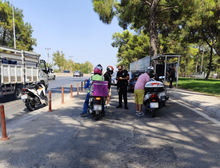Denetimlerde 43 iş yeri kontrol edilirken, kurallara aykırı olduğu belirlenen 115 motosiklete idari para cezası uygulandı, 33 motosiklet ise trafikten men edildi.
