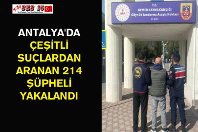 Antalya'da jandarma ekiplerince, 72 saatte yürütülen çalışmalarda çeşitli suçlardan aranan 214 kişi yakalandı.