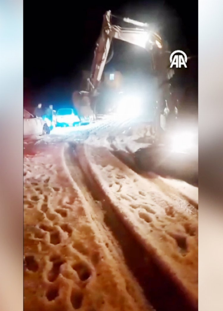 Araçların mahsur kaldığı bölgede, vatandaşlar traktör ve iş makineleri yardımıyla yol açma çalışması gerçekleştirdi.