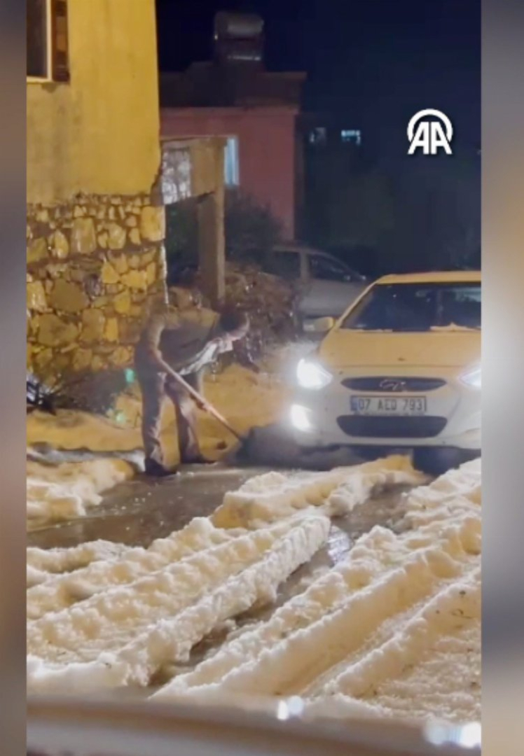 Antalya'nın Manavgat ilçesinde etkili olan dolu, tarım alanlarında hasara yol açtı.
