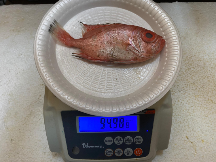 Antalya Körfezi'nde Maden Koyu açıklarında uzatma ağı kullanan bir balıkçı tarafından 70 metre derinlikte avlanan ve 94 gram ağırlığında ölçülen "mandagöz", incelenmek üzere Akdeniz Üniversitesi Su Ürünleri Fakültesine getirildi.