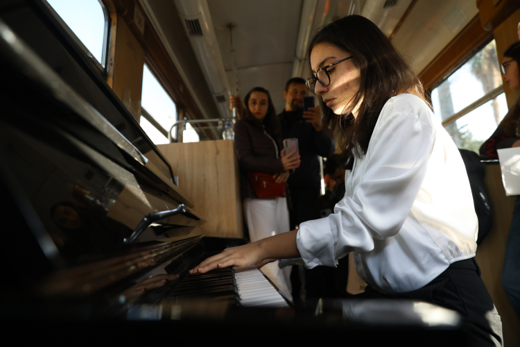 Festival kapsamında konservatuvar öğrencileri, nostalji tramvayında piyano çaldı.