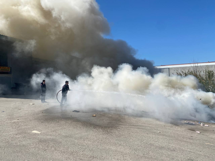 Yangın, ekiplerin müdahalesi ile çevredeki iş yerlerine sıçramadan söndürüldü.
