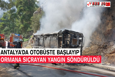 Antalya'da seyir halindeki otobüste başlayıp, ormana sıçrayan yangın ekiplerin çalışması sonucu söndürüldü.