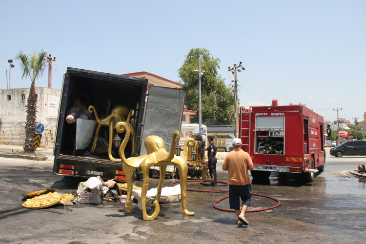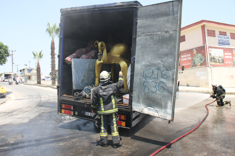 Antalya'da Park Halindeki Kamyonda Çıkan Yangın Söndürüldü