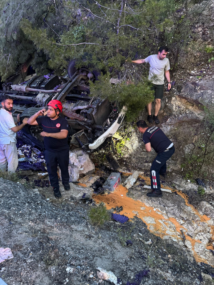 Osman Öztürk (60) idaresindeki 07 LEG 98 plakalı kamyon, Akseki-Manavgat kara yolu Güçlüköy Mahallesi yakınlarındaki virajdan şarampole devrildi.