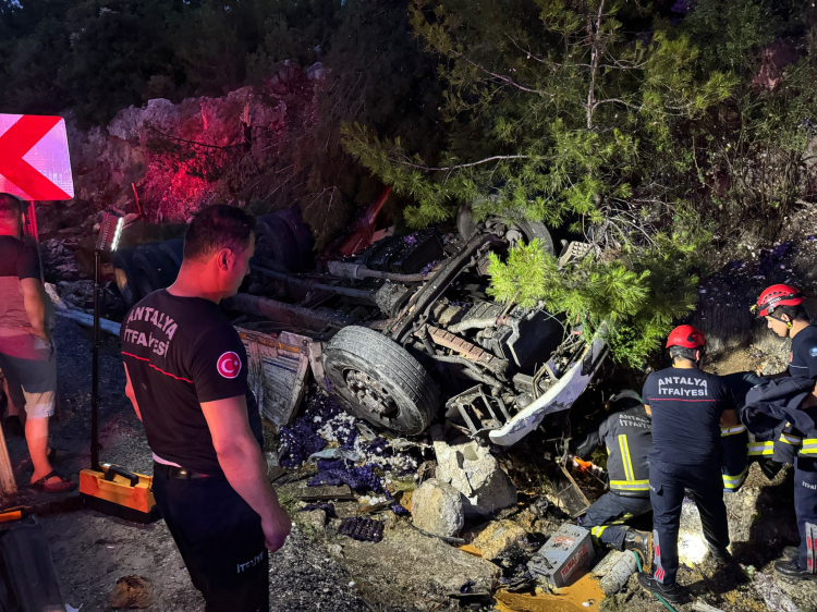 Antalya'da Şarampole Devrilen Kamyonun Sürücüsü Öldü