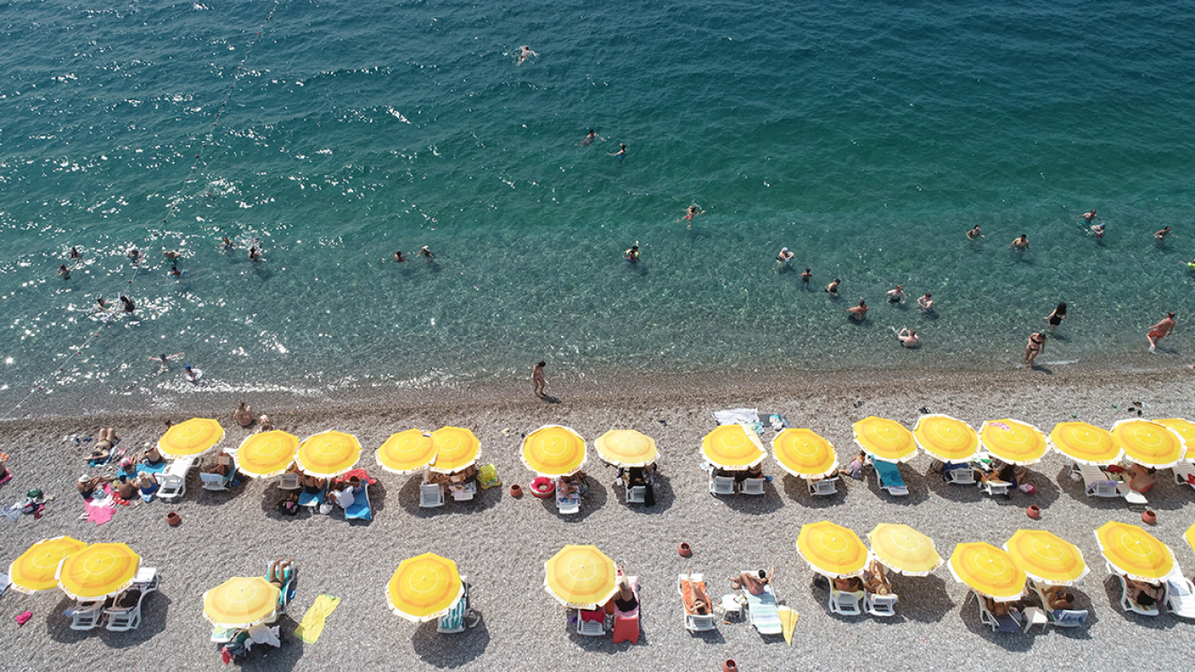 Antalya'da etkili olan sıcak hava ve nemden bunalanlar sahillerde zaman geçirdi.