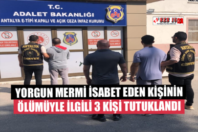 Antalya'nın Kepez ilçesinde yorgun merminin isabet etmesi sonucu bir kişinin hayatını kaybettiği olayla ilgili gözaltına alınan 3 şüpheli tutuklandı.