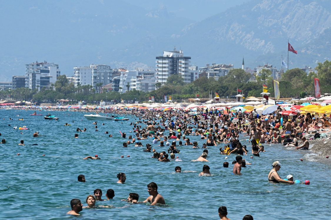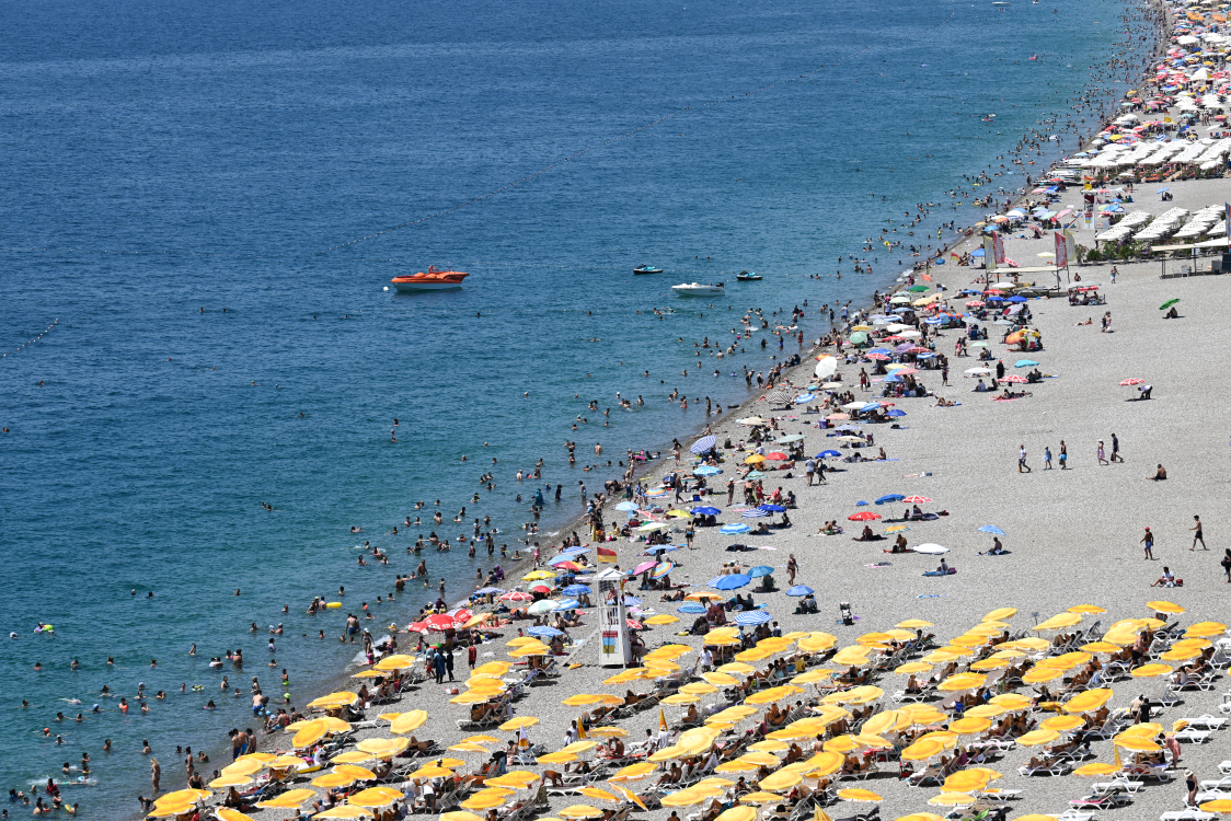 Yurt dışından ziyaretçilerin yanı sıra Kurban Bayramı tatili dolayısıyla Antalya'ya gelen yerli turistler, sabahın erken saatlerinden itibaren Konyaaltı ve Lara plajlarını doldurdu.
