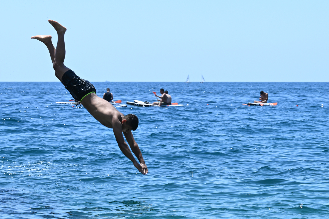 Hava sıcaklığının 33, deniz suyu sıcaklığının ise 29 derece ölçüldüğü kentte, Konyaaltı sahiline gelenlerden bazıları plaj şemsiyelerinin altında oturdu, bazıları güneşlenmeyi tercih etti.