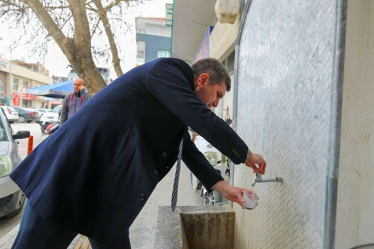 Burdur Belediye Başkanı Ali Orkun Ercengiz, İçme Suyu ve Arıtma Tesisinin devreye girmesinin ardından Konak Mahallesinde bulunan çeşmeden içerek açıklama yaptı.