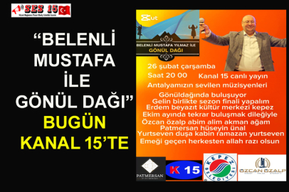Kanal 15 ekranlarında 15 günde bir Çarşamba akşamları yayınlanan “Belenli Mustafa ile Gönül Dağı” programı bugün akşam canlı yayınla sizlerle olacak.