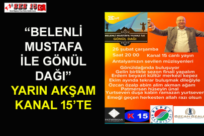 Kanal 15 ekranlarında 15 günde bir Çarşamba akşamları yayınlanan “Belenli Mustafa ile Gönül Dağı” programı yarın akşam canlı yayınla sizlerle olacak.