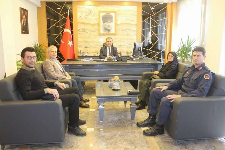 Kaymakamı Bayram Gale ziyaret sonunda Hayırsever Fatma Arıcan, Jandarma Asayiş Vakfı yetkilisi Emekli Jandarma Albay Atilla Onal, Bucak İlçe Jandarma Komutanı Teğmen Alperen Çatlı ile birlikte hatıra fotoğrafı çektirdi.