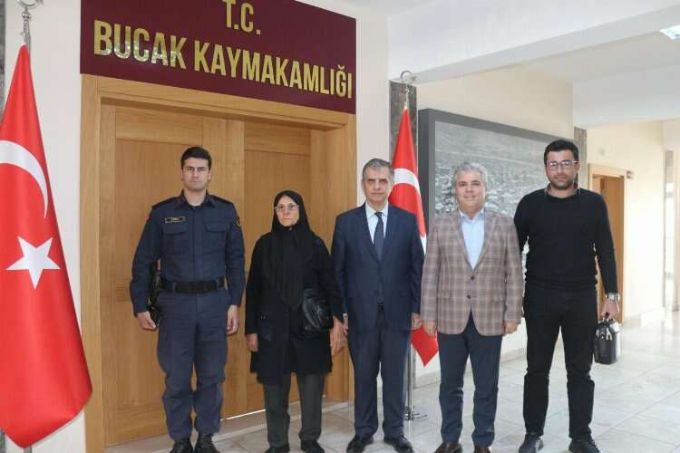 Bucak’a bağlı Boğazköy köyünden arazisini Jandarma Asayiş Vakfına bağışlayan hayırsever Fatma Arıcan, Bucak İlçe Kaymakamı Bayram Gale’yi makamında ziyaret etti.