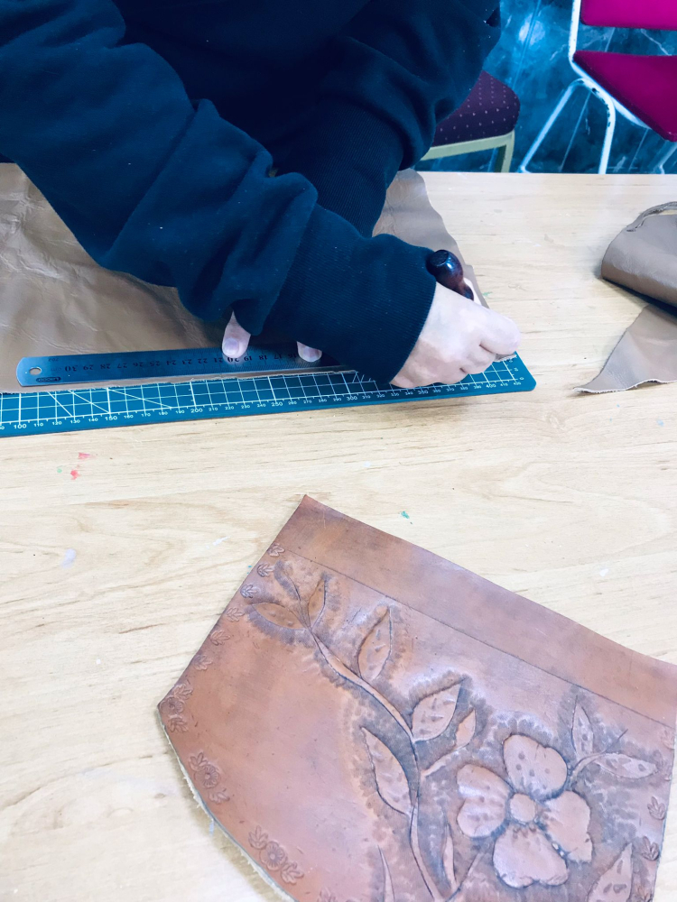 Kursiyerler atölyede deri aksesuar çeşitlerinden çanta, cüzdan gibi çeşitli aksesuarlar üreterek hem el becerilerini geliştiriyor hem zamanını değerlendiriyor.