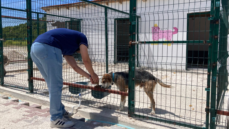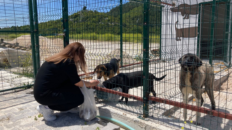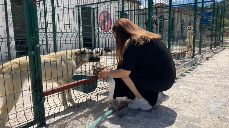 Hayvanlarla yakından ilgilenen öğrenciler, köpeklere mama dağıttı.