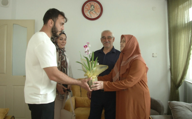 Öğrenciler, ilk olarak Şehit Hüseyin Arslan’ın anne ve babasını ziyaret ederek, Anne Havva Arslan’ın “Anneler Gününü” kutladı.