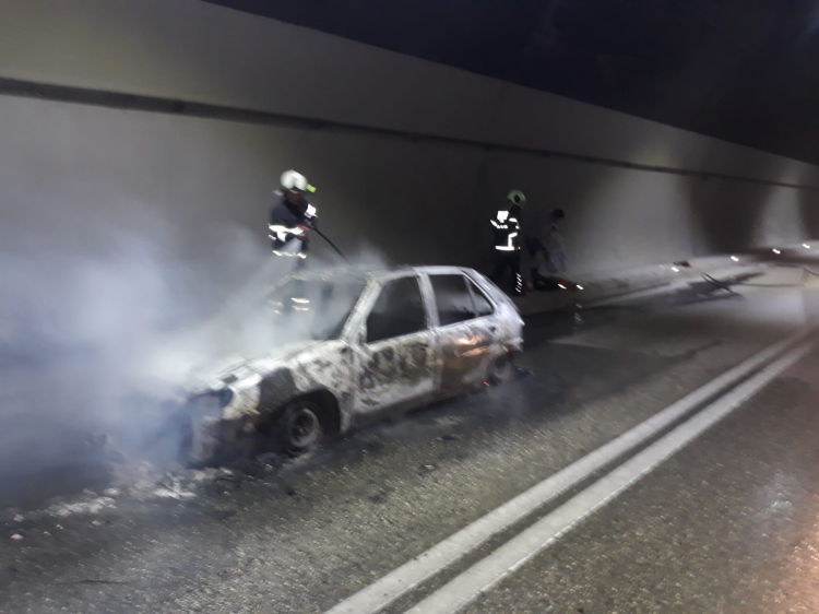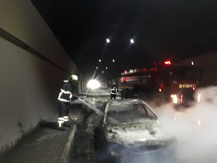 Isparta - Antalya karayolu Kargı tünelinde meydana gelen otomobil yangınında araç tamamen yandı.