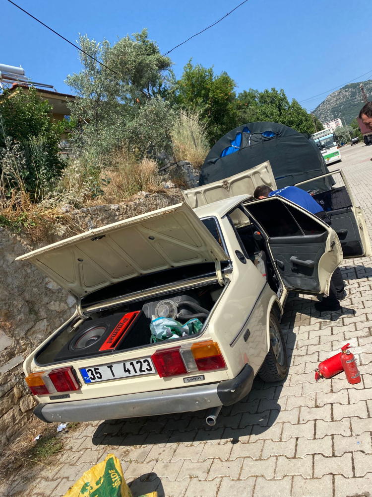 Yangın vatandaşın kendi imkanları ile söndürülürken İtfaiye ekipleri sönen aracın kontrollerini sağladı.