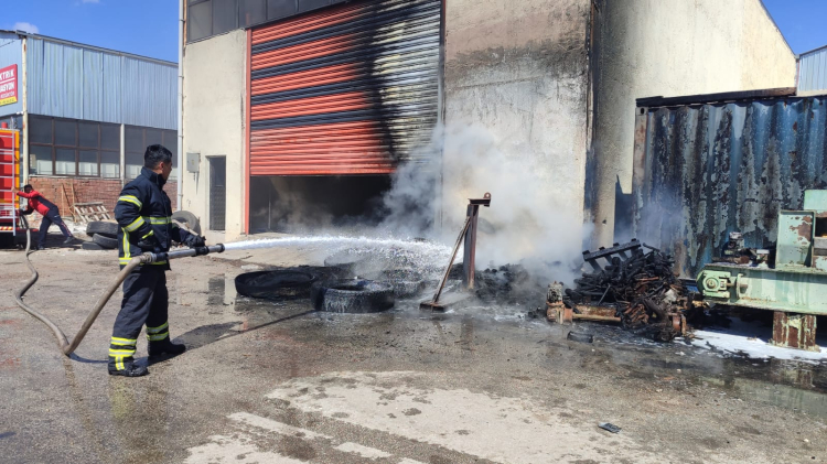 Olay yerine gelen itfaiye ekiplerince odun ve lastiklerden çıkan yangın hububat deposu sıçramadan büyümeden söndürüldü, soğutma çalışması yapıldı.