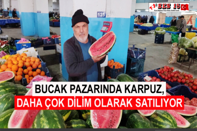Pazar esnafı Fethi Şimşek ise “Bu karpuz İran’dan geliyor. Dilimlenmiş olarak ta satıyoruz, kilosu 70 liradır. Vatandaşlar az da olsa alıyor. Bucak’ta karpuz yaklaşık 2 ay sonra çıkar” dedi.