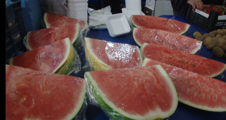 Pazarcılar karpuzları tane olarak ta satarken vatandaşın bütçesine göre dilimleyerek te satışa sunuyor.