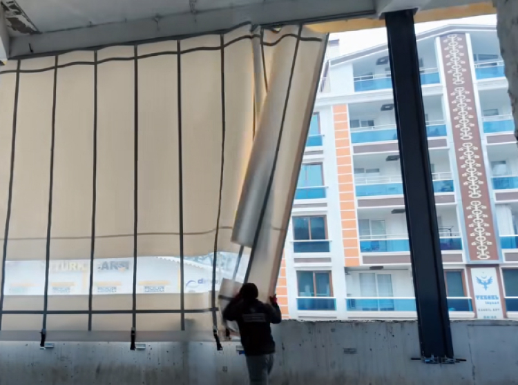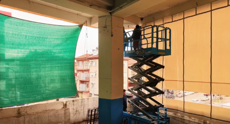 Çalışmalar kapsamında, pazarın çevresi yarı şeffaf brandalar ile kapatılıyor.