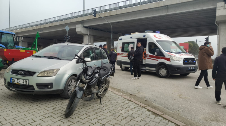 Burdur Antalya Karayolu üzeri Bucak Sanayi kavşağında motosiklet sürücüsünün düşmesi sonucu trafik kazası meydana geldi.