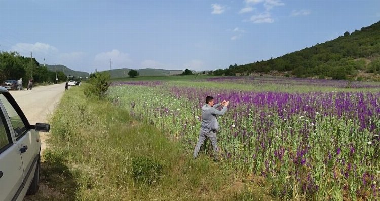 Afyon tarlasını adeta mor renge boyayan çiçekleri gören vatandaşlar cep telefonlarına sarılıyor. Anı ölümsüzleştirmek isteyenler çiçeklerin arasına girerek bol bol hatıra fotoğrafı çektiriyor.