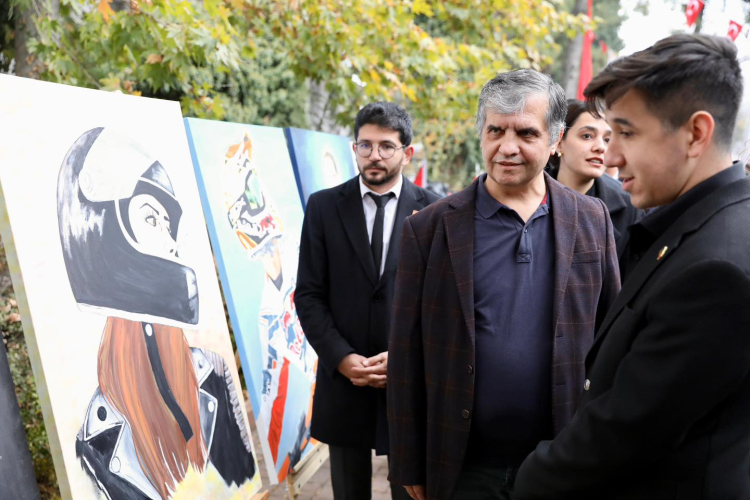 Başkan Gümüş, “Biz belediye olarak çok mutluyuz, Tuğba hocam ve öğrencilerine bu konuda çok teşekkür ediyoruz. İçimizi sanatla barıştırmak, kaynaştırmak istedik, bu son sergimiz. 24 Kasım Öğretmenler Gününde son bulacak. Önümüzdeki seneye de daha iyi hazırlanacağız. Bu günün ayrı bir önemi var, Atatürk’ün gençliğinin böyle bir etkinlik yapması hepimizi çok mutlu ediyor. Yıldönümünde Atamızı anıyoruz, resimlerle daha kalıcı hale getiriyoruz. Emeği için hem Tuğba hocama hem Enes’e hem emeği geçen Motosiklet Kulübüne, hocalarıma çok teşekkür ediyorum” dedi.