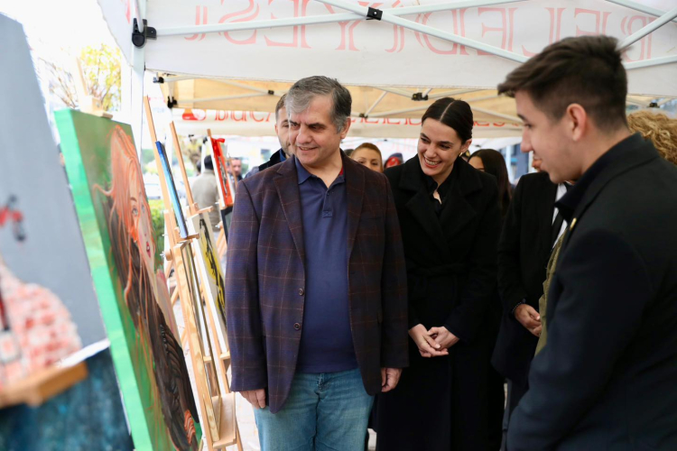 Özbek, “Öğrenci “Böyle güzel ve anlamlı bir günde beni yalnız bırakmayan herkese çok teşekkür ederim. Tuğba hocamla birlikte belki 7-8 sene oldu, kendisi yeri geldi ustam yeri geldi anne yarım. Emeği üzerimde ona çok teşekkür ediyorum. Sergimize gelen herkese hoş geldiniz diyorum, teşekkür ediyorum” dedi.