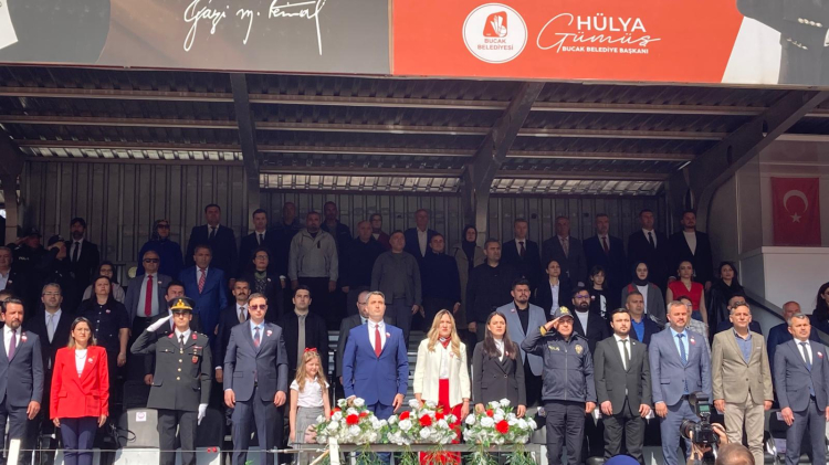 Bucak İlçe Stadyumu’nda bugün saat 10.00’da düzenlenen kutlama programı, saygı duruşunda bulunulması ve İstiklal Marşı’nın okunmasıyla başladı.
