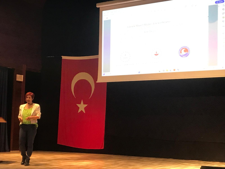 Konferansta Mehmet Akif Ersoy Üniversitesi Çocuk Gelişimi bölümünden Doç Dr. Hatice Darga ailede öğrenci veli iletişiminin önemi konusunda katılımcıları bilgilendirdi.