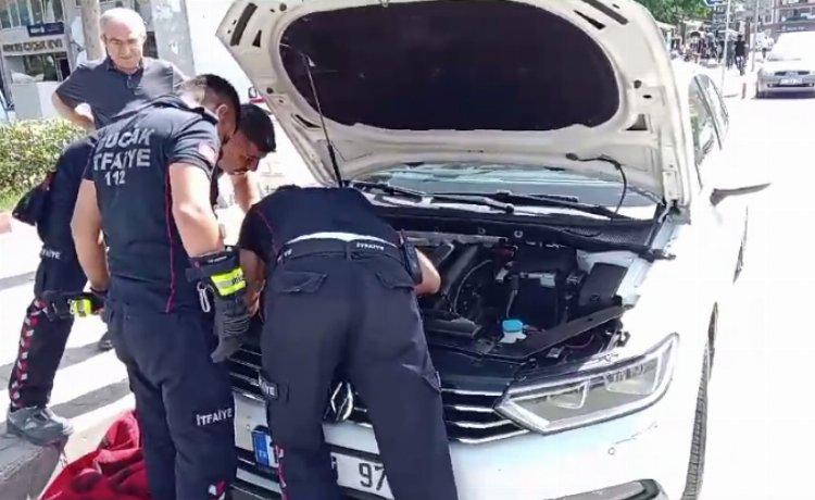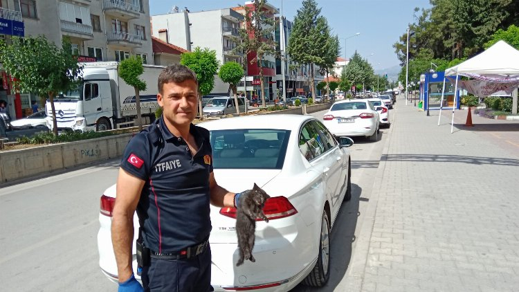 Araç sahibin de gelmesiyle ön kaput bölümü açılarak kurtarma çalışması yapan itfaiye ekipleri yavru kedinin sıkıştığı yeri tespit etti.