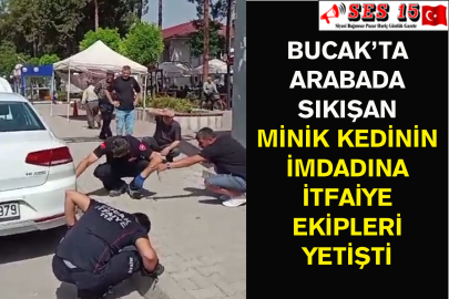 Bucak’ta Arabada Sıkışan Minik Kedinin İmdadına İtfaiye Ekipleri Yetişti