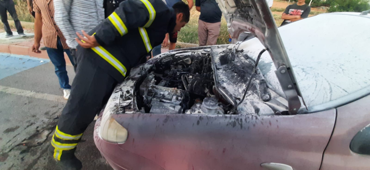 Vatandaşlar ve itfaiye ekipleri tarafından araç yangınının söndürülmesinin ardından itfaiye ekipleri olay yerinde güvenlik tedbirleri aldı