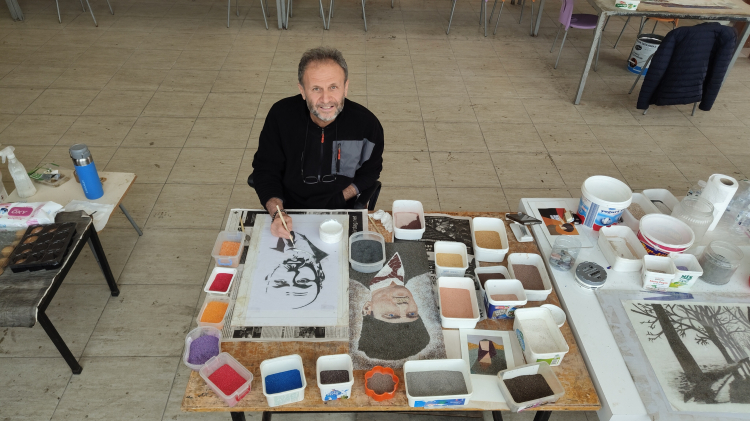 Burdur'un Bucak ilçesinde kum sanatçısı Hasan Uyar, atölyesinde atık mermerleri değerlendirerek hem geri dönüşüme katkı sağlıyor hem de ortaya dikkat çekici sanat eserleri çıkarıyor.